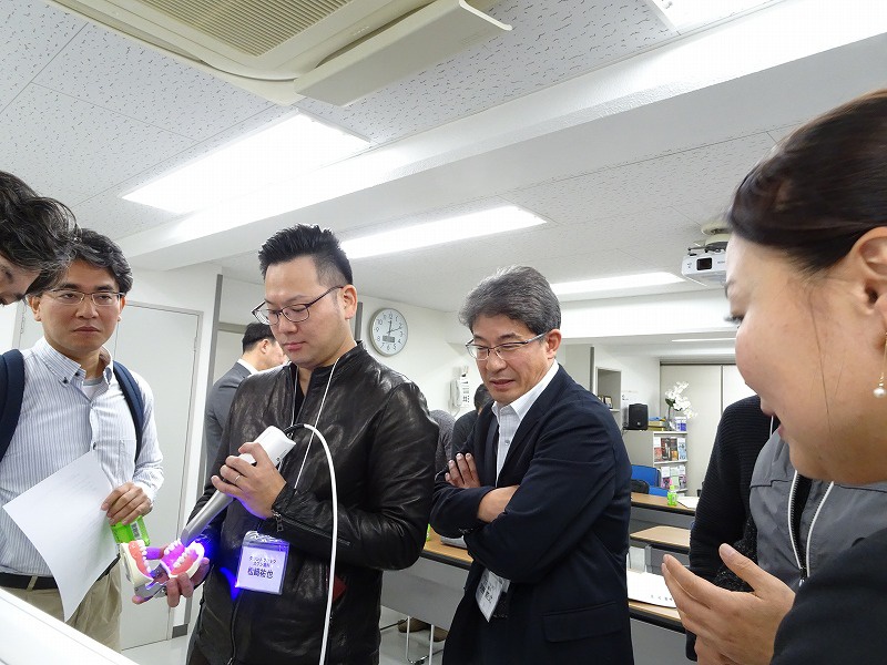 質疑応答後、参加した先生方は、実機(Primescan/プライムスキャン)に触れ、模型を使っての計測体験をしていただきました。計測速度の速さにどの先生も驚かれていました。